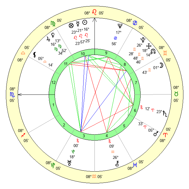 | Moon | 1 Gemini 40 | 22 Aquarius 9 | 0 Virgo 9 |