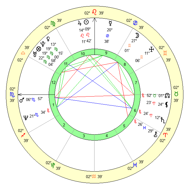 Venus | 13 Virgo 16 | 2 Cancer 57 | 29 Leo 15 |