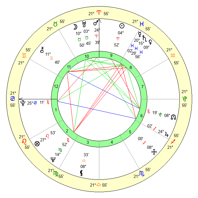 | Mars | 24 Aries 39 | 21 Cancer 40 | 27 Gemini 50 |
