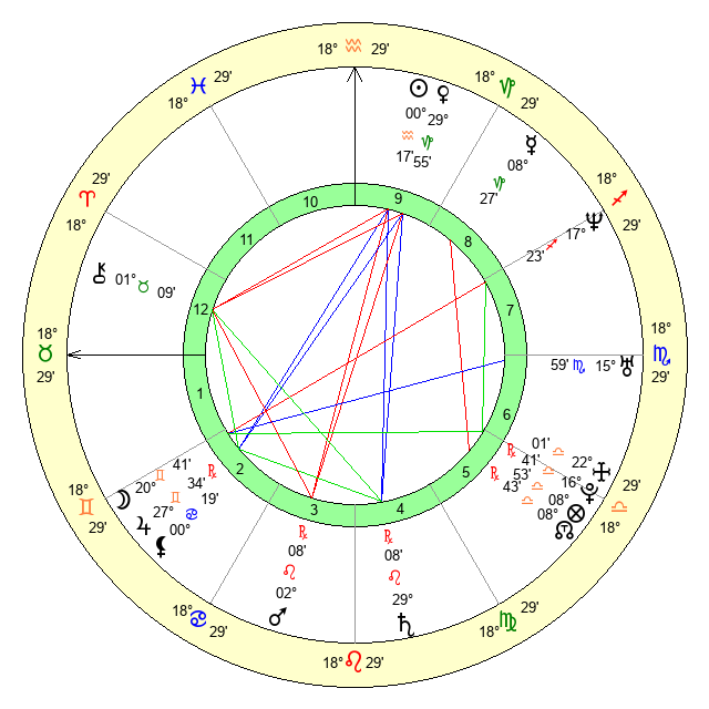 | Moon | 20 Gemini 38 | 18 Libra 25 | 12 Pisces 33 |