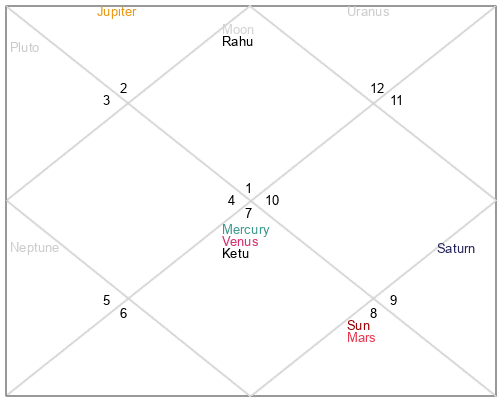 | Rahu | 11 Taurus 20 | 14 Pisces 33 | 6 Taurus 15 |