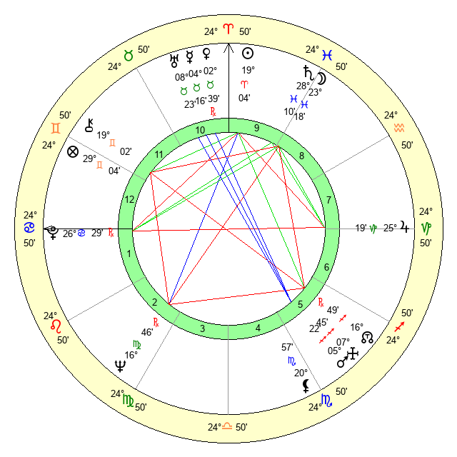 | Moon | 23 Pisces 16 | 9 Virgo 31 | 18 Gemini 38 |