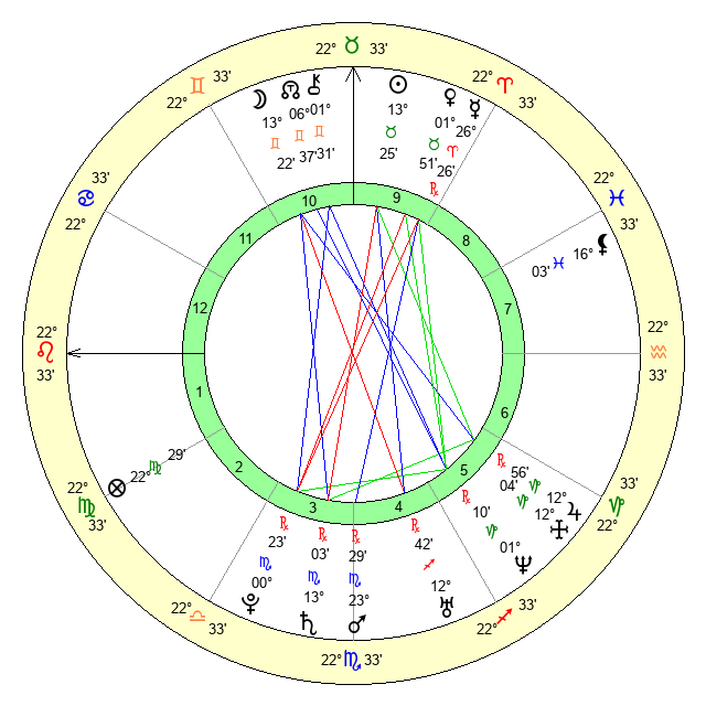 | Moon | 13 Gemini 30 | 3 Leo 9 | 23 Sagittarius 55 |
