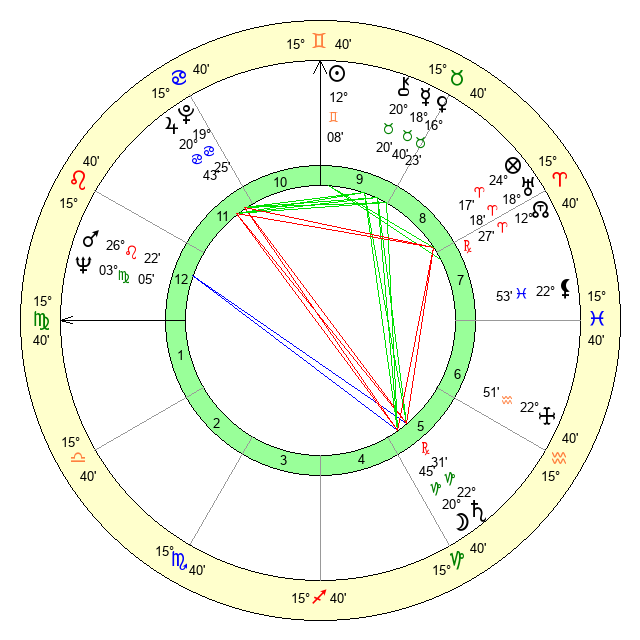 | Sun | 12 Gemini 8 | 13 Gemini 22 | 12 Virgo 9 |