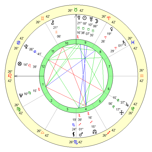 | Moon | 6 Taurus 35 | 16 Libra 39 | 1 Leo 58 |