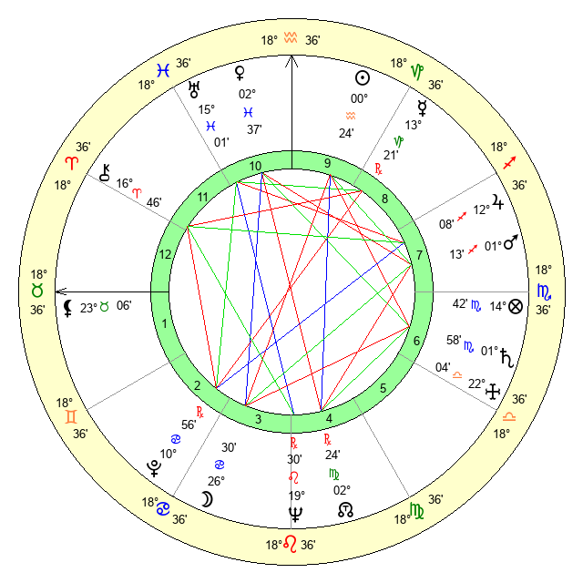 | Mars | 1 Sagittarius 14 | 24 Cancer 0 | 4 Aquarius 5 |