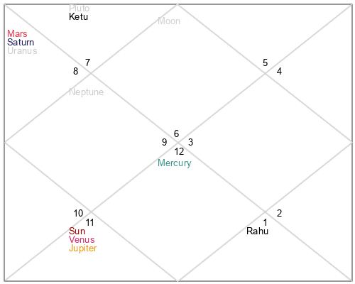 | Ketu | 2 Scorpio 46 | 28 Virgo 26 | 0 Scorpio 42 |