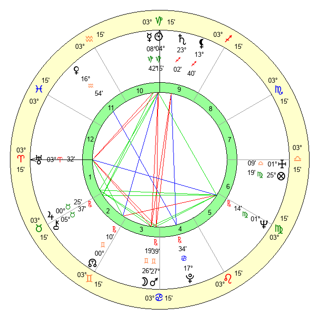 | Moon | 26 Gemini 27 | 11 Scorpio 3 | 29 Sagittarius 33 |