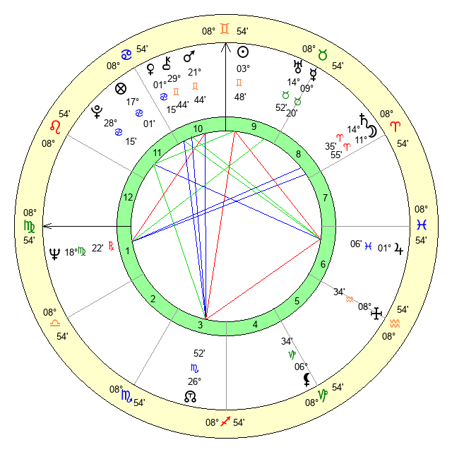 | Sun | 3 Gemini 48 | 4 Gemini 44 | 26 Leo 59 |
