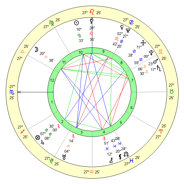 | Neptune | 27 Cancer 20 | 1 Aries 17 | 27 Cancer 30 |
