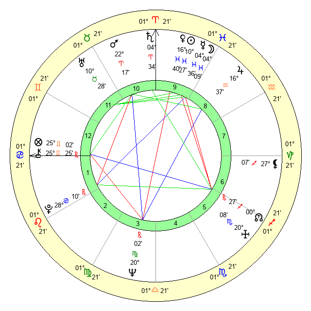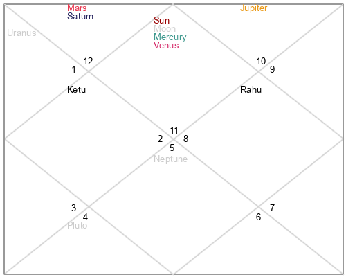 | Sun | 10 Pisces 27 | 11 Pisces 22 | 5 Gemini 44 |