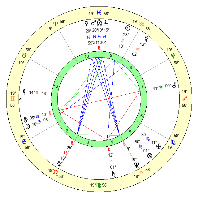 | Jupiter | 14 Pisces 55 | 11 Gemini 34 | 2 Aries 19 |