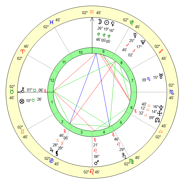 | Venus | 16 Capricorn 5 | 6 Pisces 51 | 15 Pisces 4 |
