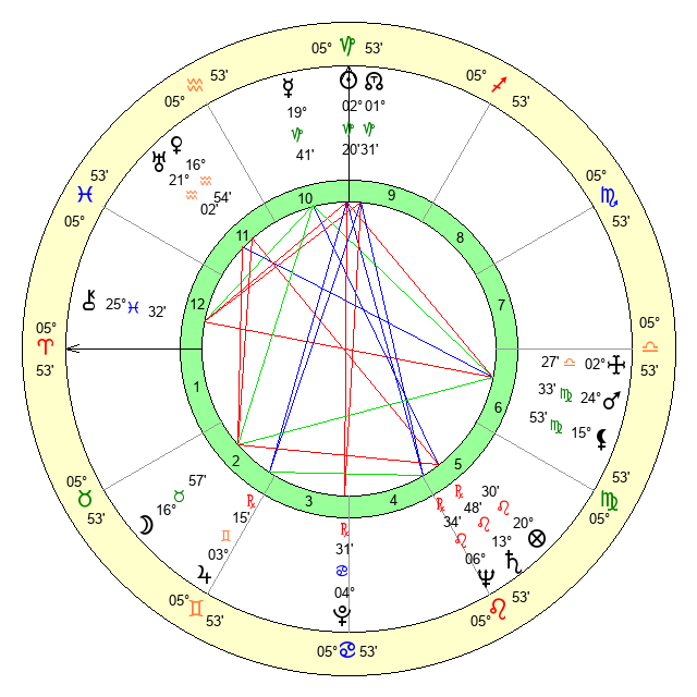 | Mars | 24 Virgo 34 | 4 Leo 1 | 15 Virgo 18 |