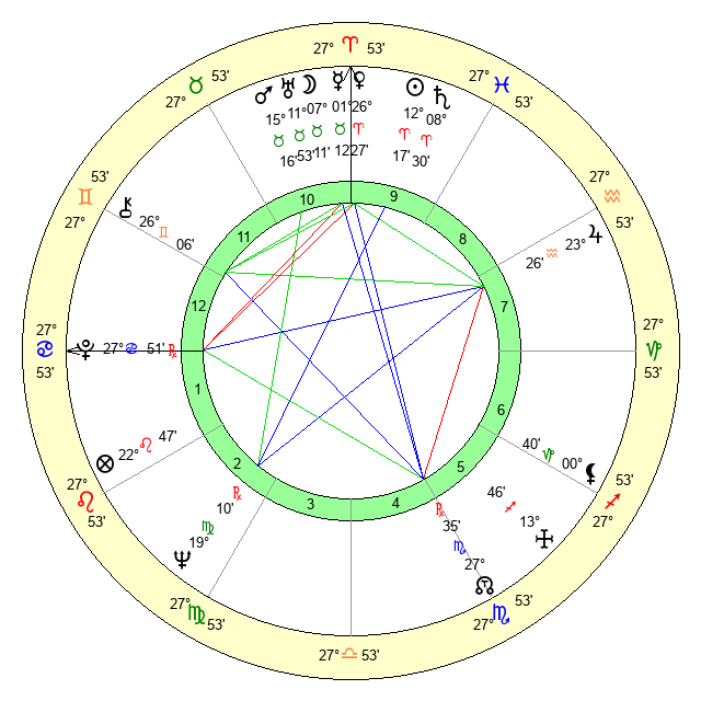 | Sun | 12 Aries 17 | 13 Aries 12 | 6 Cancer 19 |