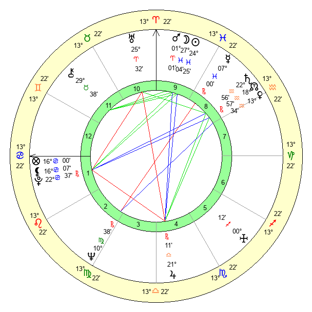 | Mars | 1 Aries 2 | 19 Cancer 11 | 8 Gemini 30 |