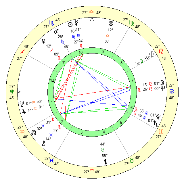 | Neptune | 0 Leo 27 | 27 Pisces 20 | 28 Cancer 5 |