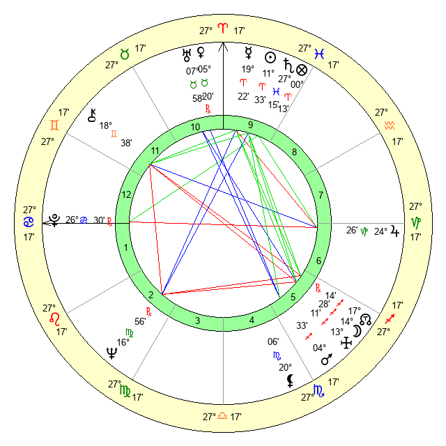 | Sun | 11 Aries 33 | 12 Aries 13 | 6 Cancer 33 |