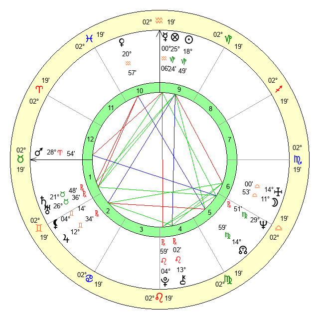 | Moon | 11 Libra 54 | 25 Taurus 21 | 28 Libra 13 |