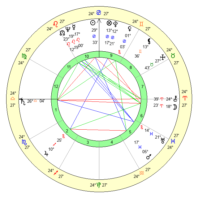| Venus | 1 Cancer 4 | 20 Gemini 17 | 27 Virgo 45 |