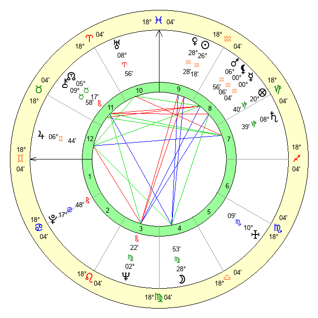 | Moon | 28 Virgo 48 | 2 Libra 31 | 11 Pisces 2 |