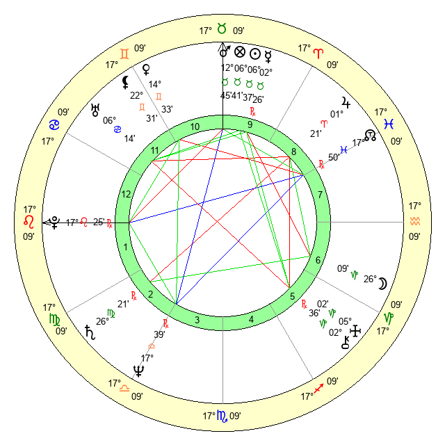 | Neptune | 17 Libra 39 | 0 Aries 59 | 16 Libra 47 |