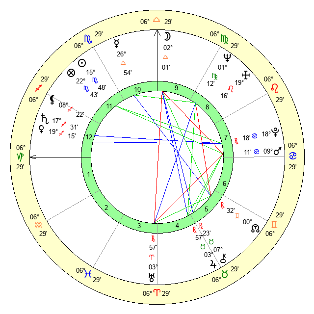 | Neptune | 1 Virgo 13 | 29 Pisces 38 | 0 Virgo 10 |