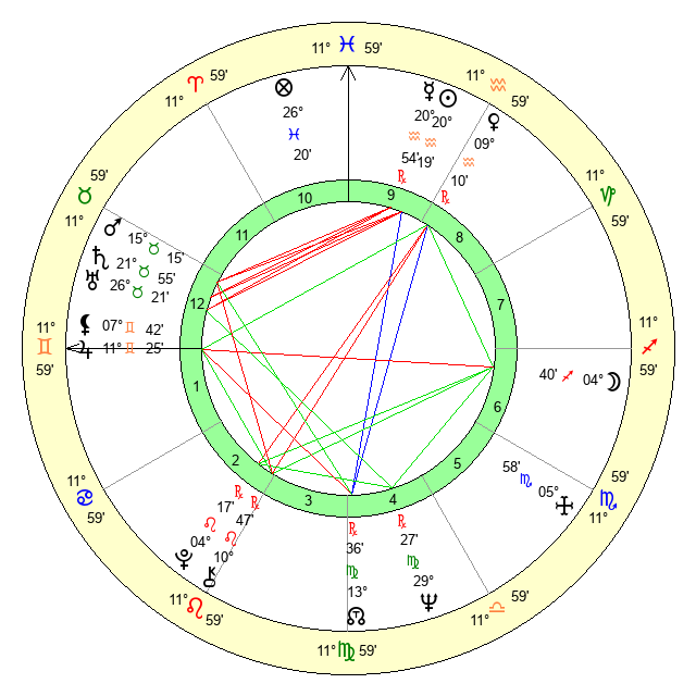 | Venus | 9 Aquarius 11 | 3 Aries 42 | 27 Pisces 26 |