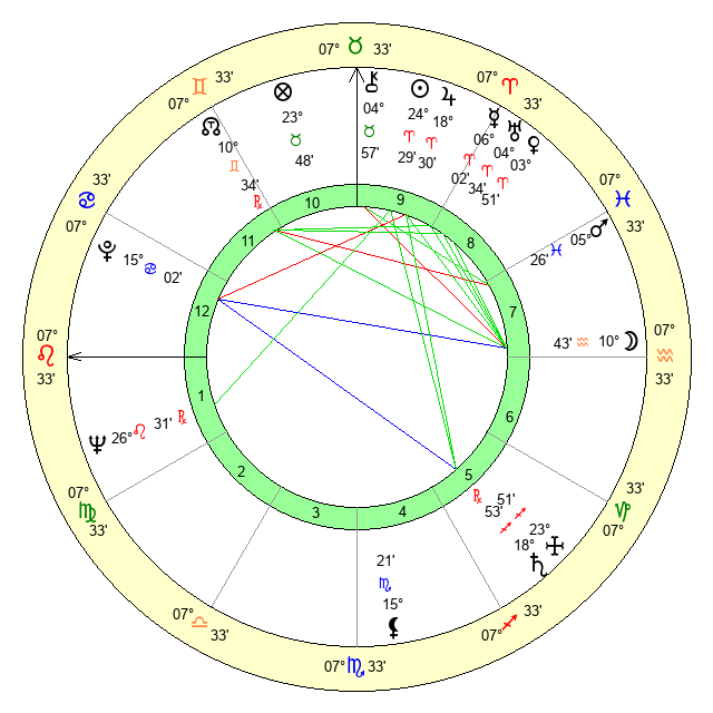 | Venus | 3 Aries 52 | 24 Pisces 42 | 2 Leo 58 |