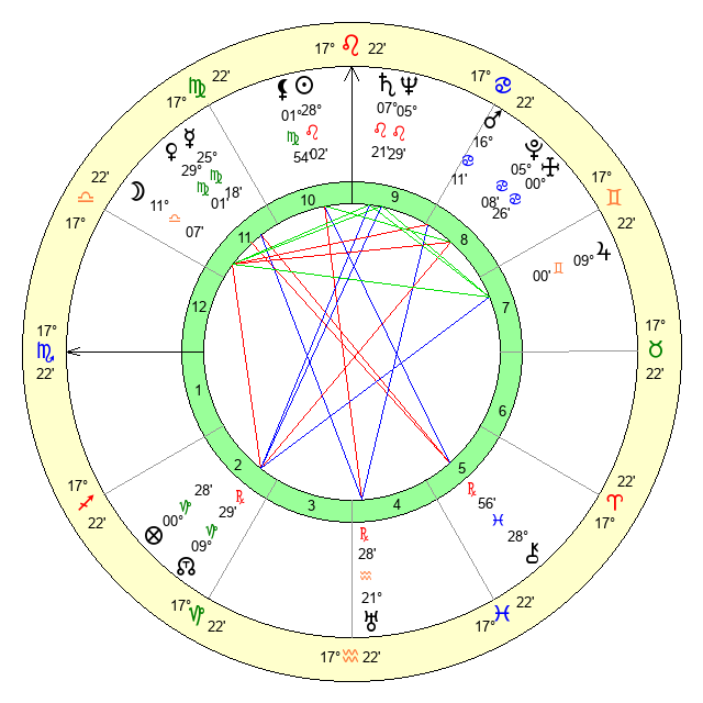 | Moon | 11 Libra 12 | 9 Leo 47 | 27 Virgo 7 |