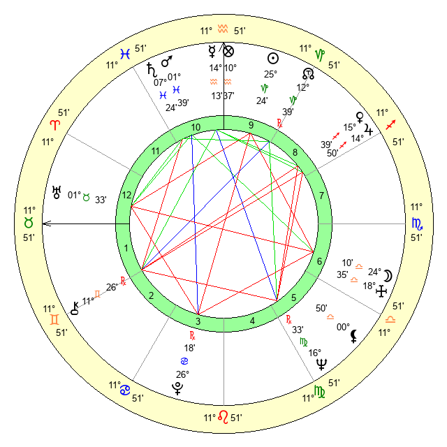| Moon | 24 Libra 5 | 0 Virgo 4 | 22 Capricorn 15 |