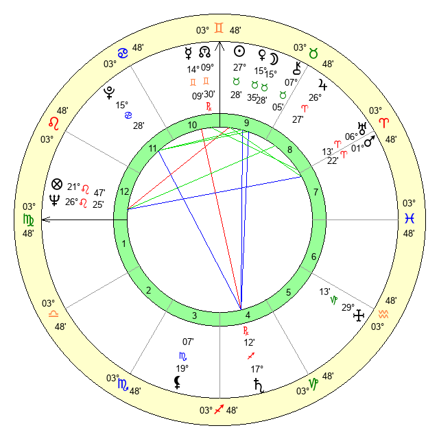 | Mercury | 14 Gemini 9 | 14 Taurus 54 | 7 Virgo 39 |