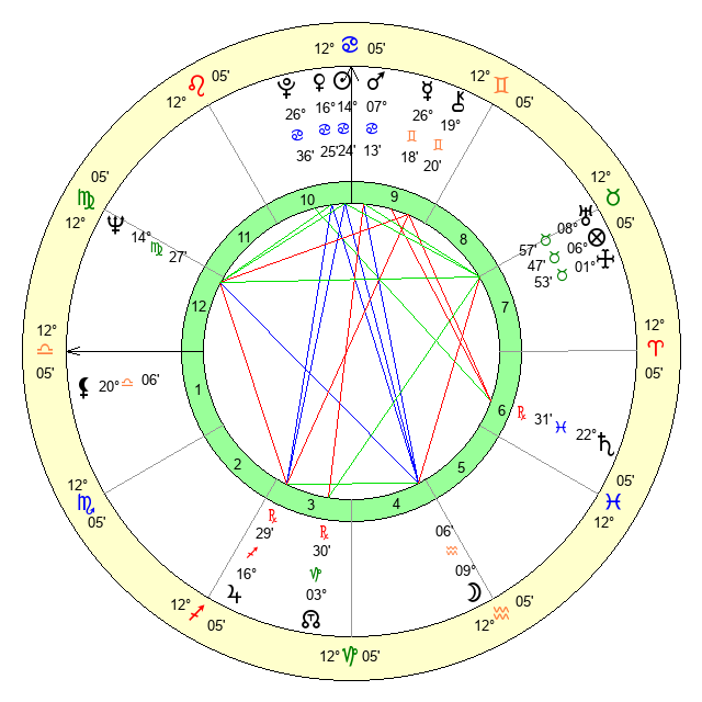 | Venus | 16 Cancer 25 | 2 Gemini 17 | 6 Scorpio 4 |