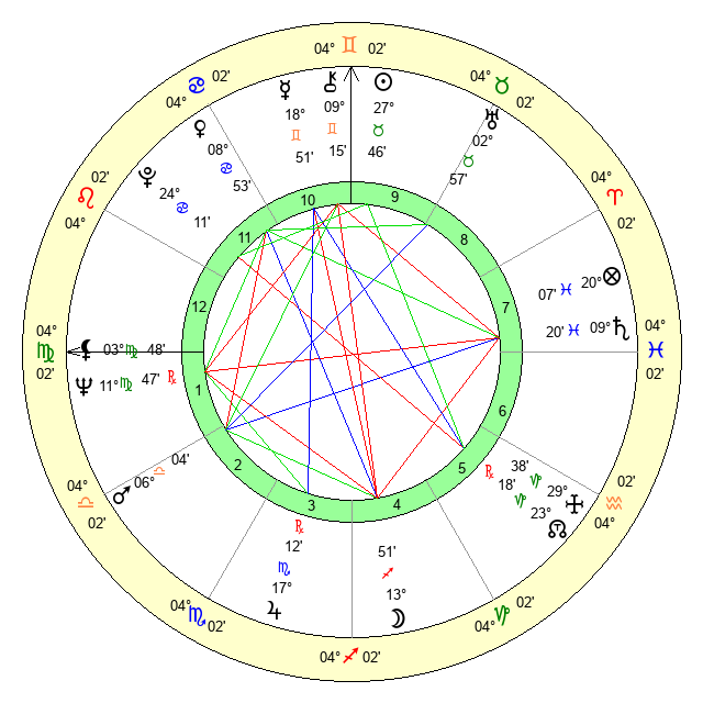 | Mars | 6 Libra 2 | 14 Leo 40 | 10 Scorpio 52 |