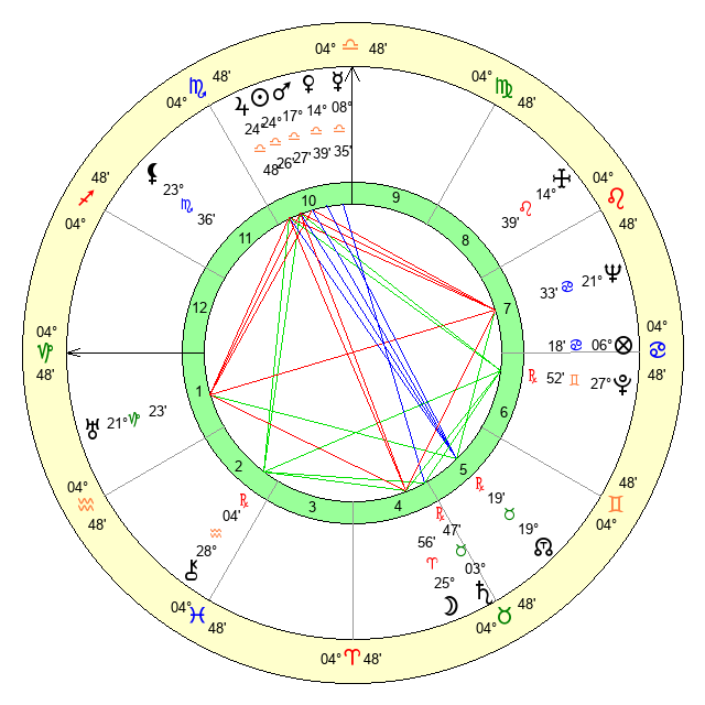 | Moon | 25 Aries 48 | 24 Virgo 15 | 14 Cancer 55 |