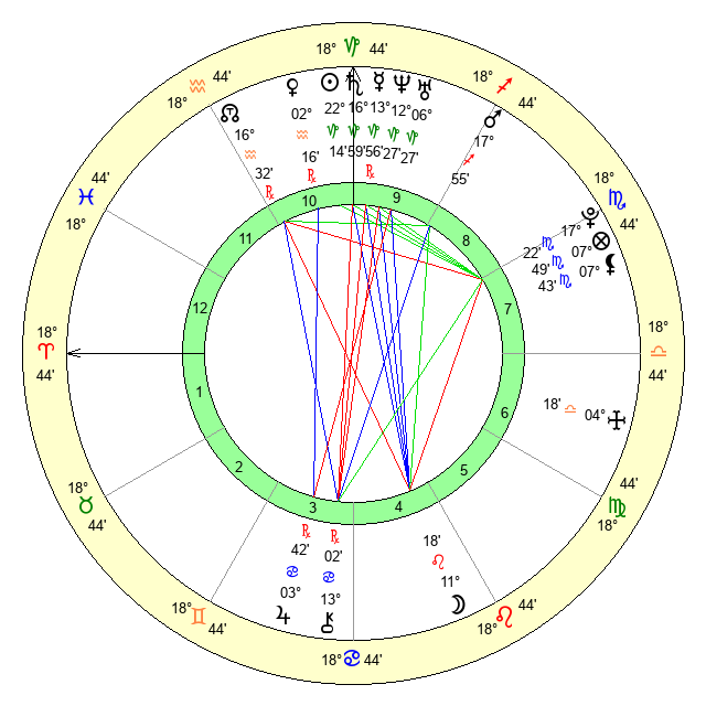 | Moon | 11 Leo 15 | 7 Cancer 18 | 15 Scorpio 57 |