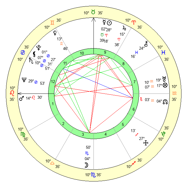 | Sun | 28 Aries 19 | 28 Aries 54 | 12 Leo 53 |