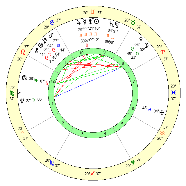 | Sun | 18 Gemini 12 | 19 Gemini 6 | 7 Virgo 38 |