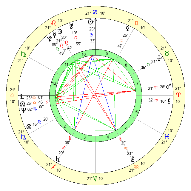 | Sun | 25 Cancer 33 | 26 Cancer 19 | 0 Libra 9 |