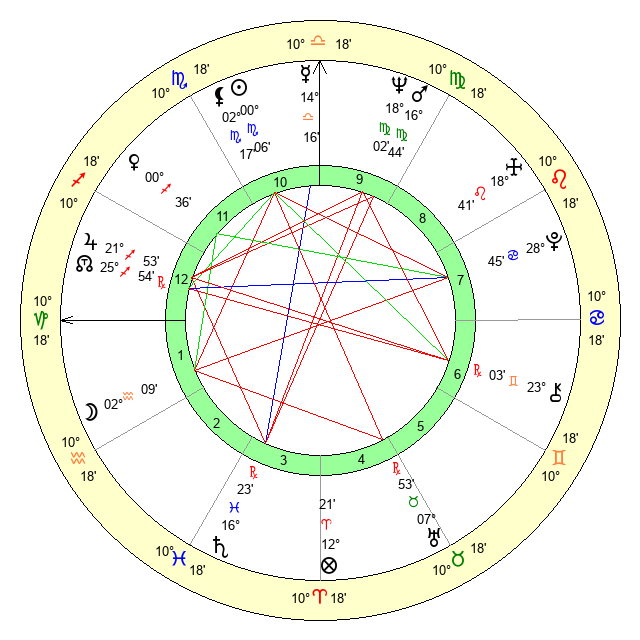 | Mars | 16 Virgo 44 | 21 Scorpio 36 | 7 Scorpio 50 |