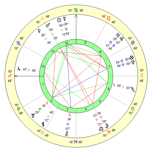 Venus | 26 Libra 45 | 10 Virgo 1 | 13 Pisces 11 |