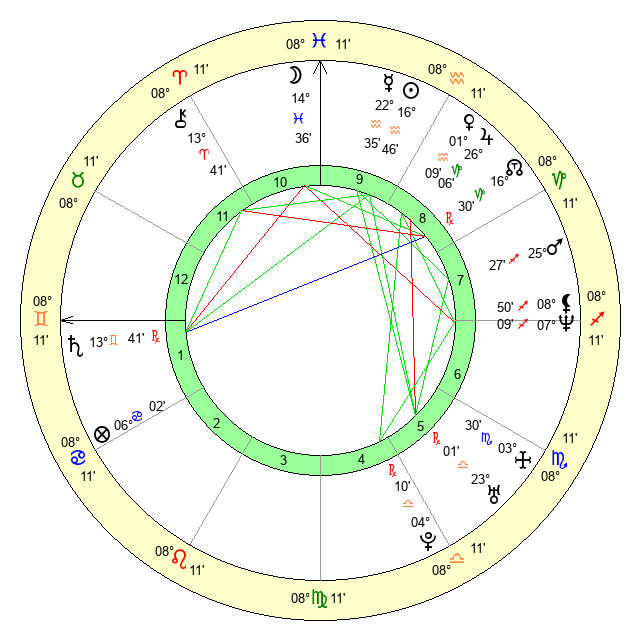| Moon | 14 Pisces 39 | 22 Taurus 2 | 9 Aquarius 1 |