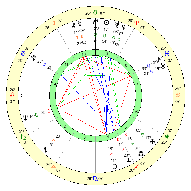| Mars | 26 Taurus 41 | 9 Leo 13 | 26 Cancer 57 |