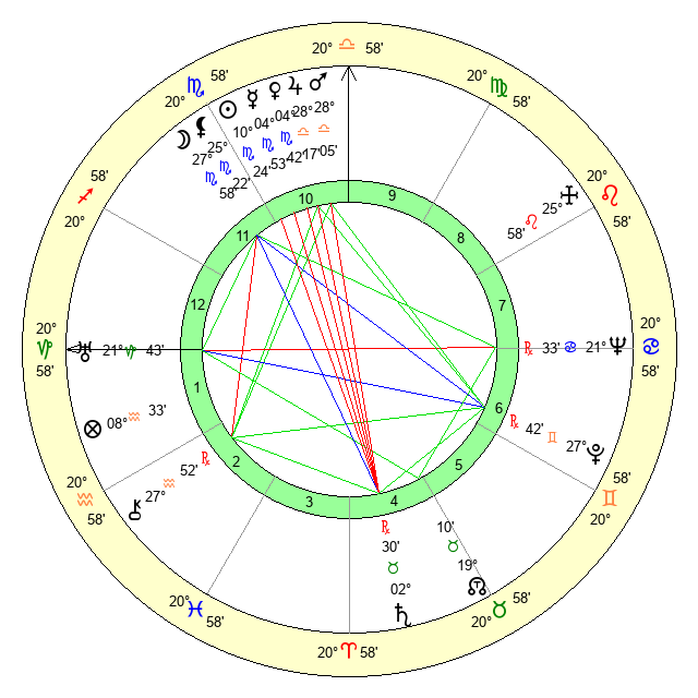 | Jupiter | 28 Libra 6 | 20 Gemini 16 | 14 Scorpio 17 |