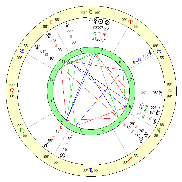 | Sun | 27 Aries 29 | 28 Aries 54 | 24 Leo 33 |