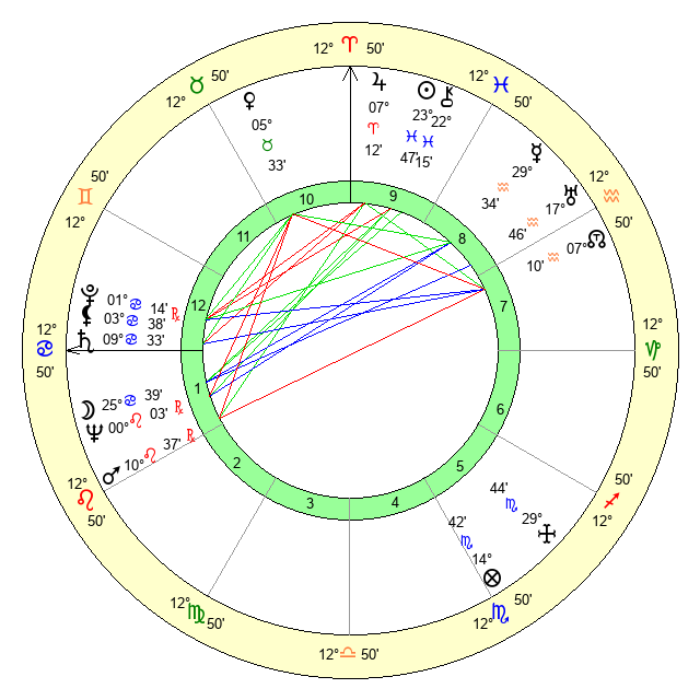 | Sun | 23 Pisces 47 | 24 Pisces 22 | 9 Cancer 28 |