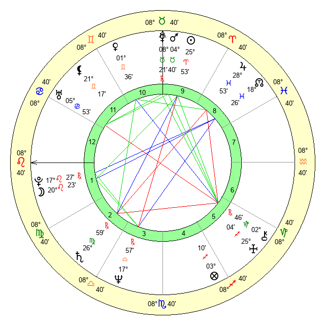| Pluto | 17 Leo 27 | 3 Aquarius 44 | 18 Leo 13 |