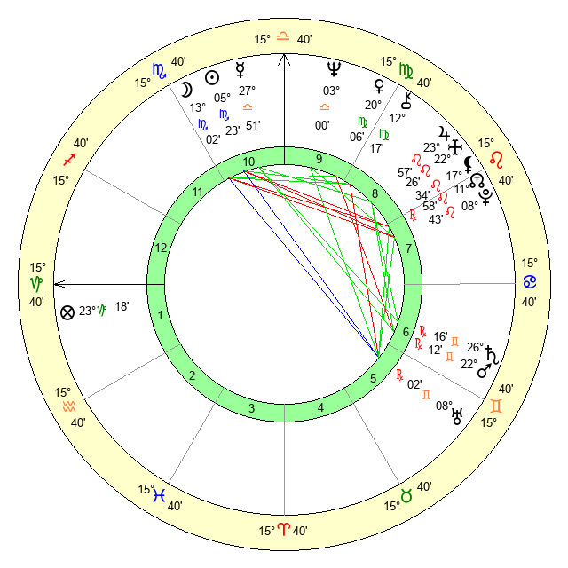 | Moon | 13 Scorpio 4 | 6 Aquarius 51 | 10 Scorpio 45 |