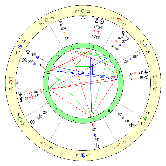 | Neptune | 22 Leo 4 | 0 Aries 35 | 23 Leo 35 |