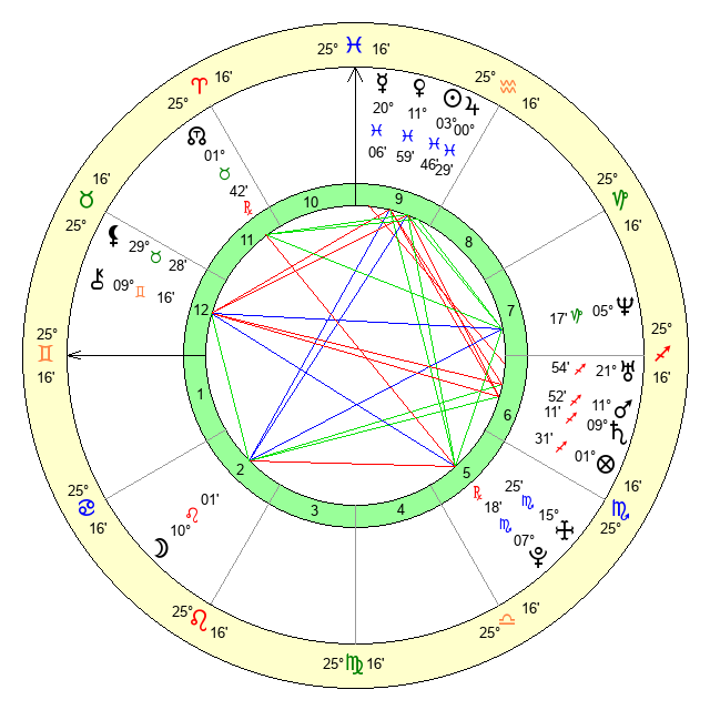 | Jupiter | 0 Pisces 30 | 11 Gemini 50 | 9 Pisces 36 |